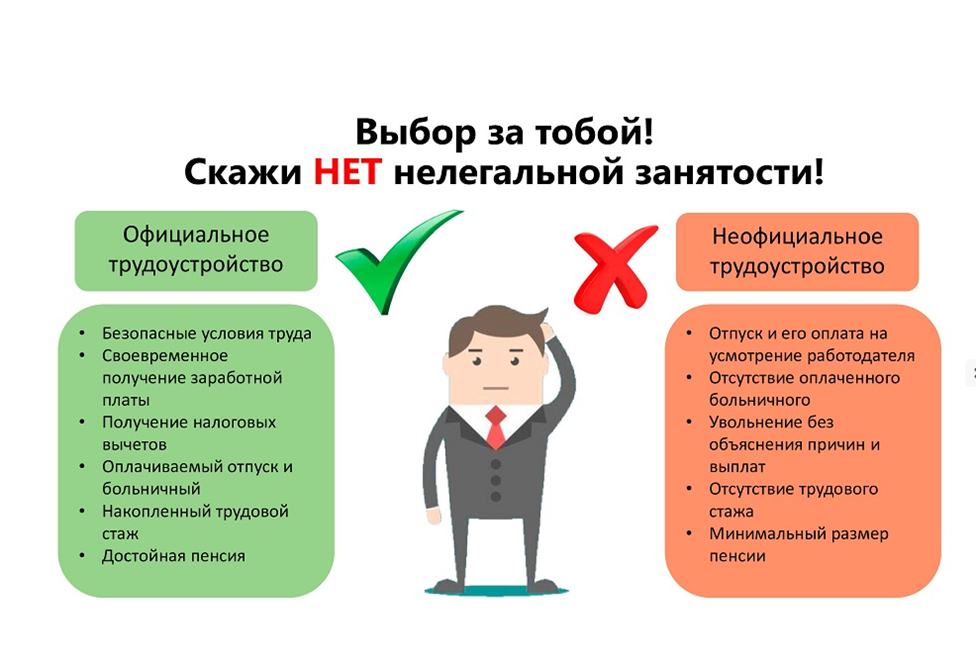 Нет нелегальной занятости — выбирайте официальную работу с гарантиями и правами.