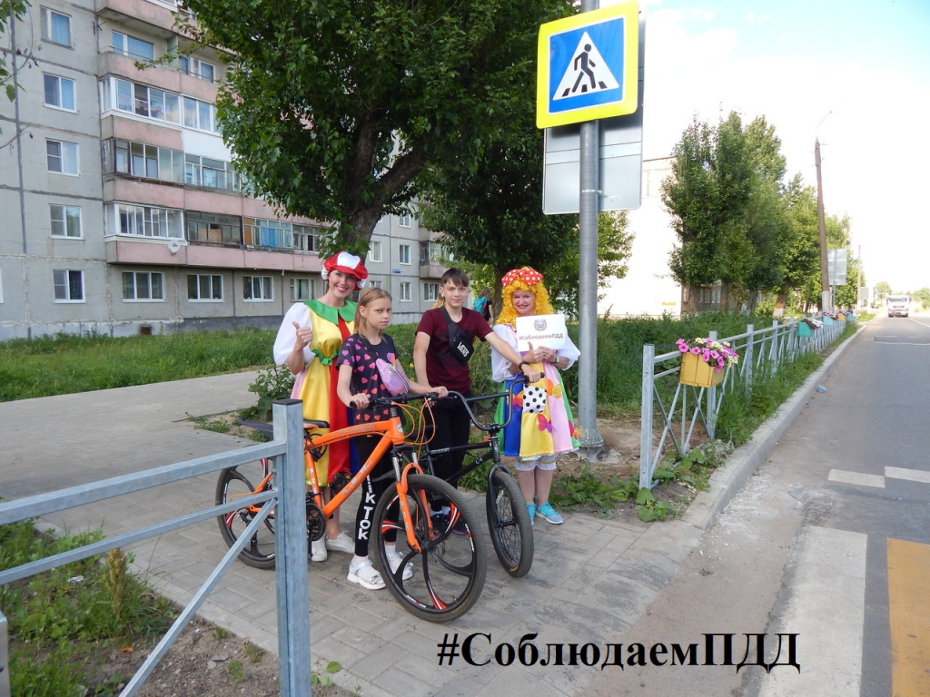 Тутаевцы присоединились к интернет-кампании «Вместе за соблюдение ПДД». Ирина Сергеевна вместе со своим маленьким сыном Георгием напомнили, что соблюдать Правила необходимо с пеленок. Семен Крамарев и Ксения Усанова всем велосипедистам показывают, что подъезжая к проезжей части необходимо спешиться с велосипеда и переходить дорогу по пешеходному переходу, перевозя велосипед рядом с собой. Творческий коллектив МУ «Районного дворца культуры им. А.Г. Малова» показывают женщине, как безопасно перевозить в коляске ребенка по пешеходному переходу.