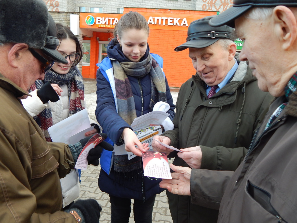 День Защитника ОтечестваВ Тутаеве Госавтоинспекция совместно с волонтерским отрядом молодежного центра «Галактика» провели акцию приуроченную к Дню защитника Отечества. Сотрудницы и волонтеры поздравили водителей с праздником, напомнили быть предельно внимательными и осторожными, дисциплинированными и взаимовежливыми. Каждому водителю были вручены поздравительные открытки. Акция направлена на повышение сознательности и уровня культуры вождения, мотивации к соблюдению Правил дорожного движения водителями и снижения числа ДТП на дорогах.