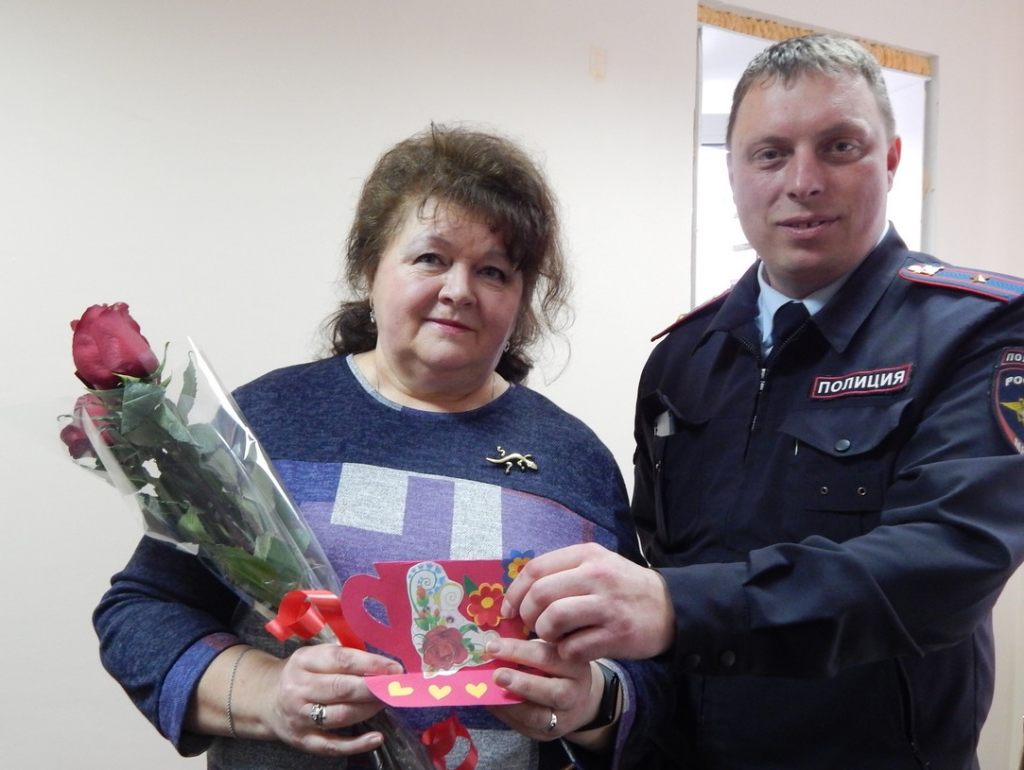 8 МартаМужской коллектив Госавтоинспекции МО МВД России «Тутаевский» поздравили не только действующих сотрудниц, но и женщин пенсионеров органов внутренних дел с праздником 8 Марта. В отдел ГИБДД пригласили бывшего старшего инспектора по административному законодательству Крылову Людмилу Анатольевну. В торжественной обстановке начальник ОГИБДД Базанов Михаил Анатольевич вручил Людмиле Анатольевне цветы и произнес красивые пожелания. Маленькие помощники ГИБДД из детского сада «Лукошко» приготовили подарок- аппликацию в виде чайной пары.