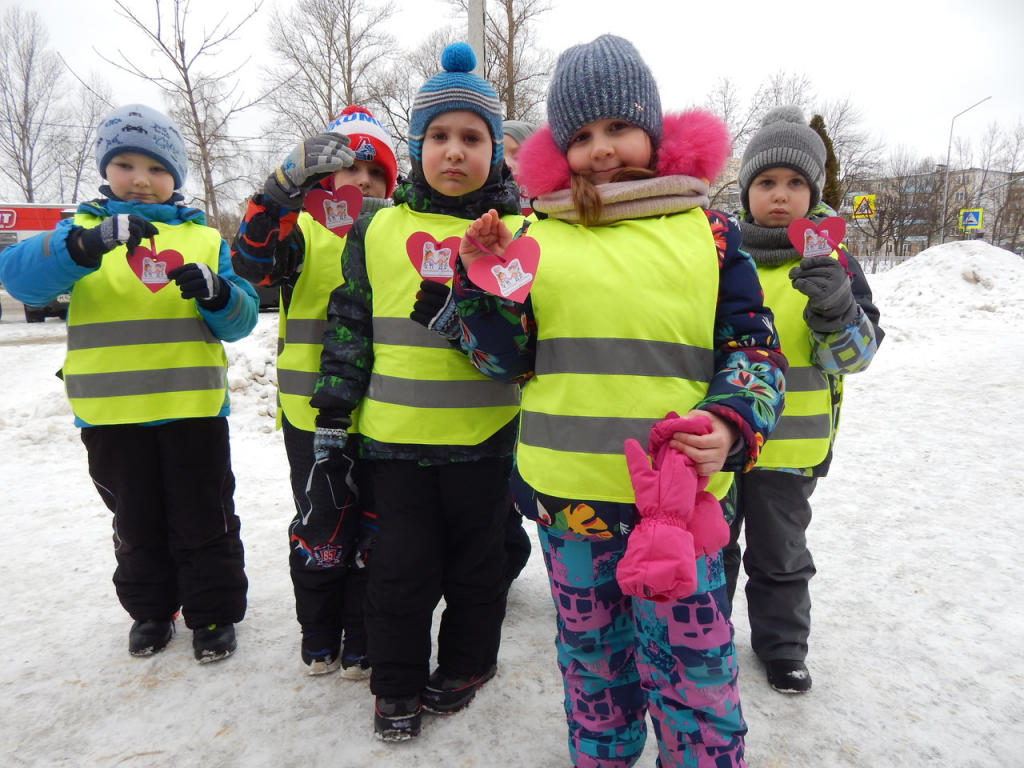 Берегите детские сердца13 февраля Госавтоинспекция совместно с отрядами юных инспекторов движения детского сада «Лукошко» и школы №6 провели информационно-пропагандистское мероприятие «Берегите сердца детей», направленное на предотвращение дорожно-транспортных происшествий с участием детей-пешеходов, детей-пассажиров и популяризации световозвращающих элементов. Ребята обращались к водителям быть внимательными на дороге, соблюдать скоростной режим, перевозить детей в автокресле и пристегнутыми ремнями безопасности. А пешеходам напоминали о важности использования световозвращающих элементов. Всем участникам акции ребята вручили сделанные своими руками цветные сердечки.