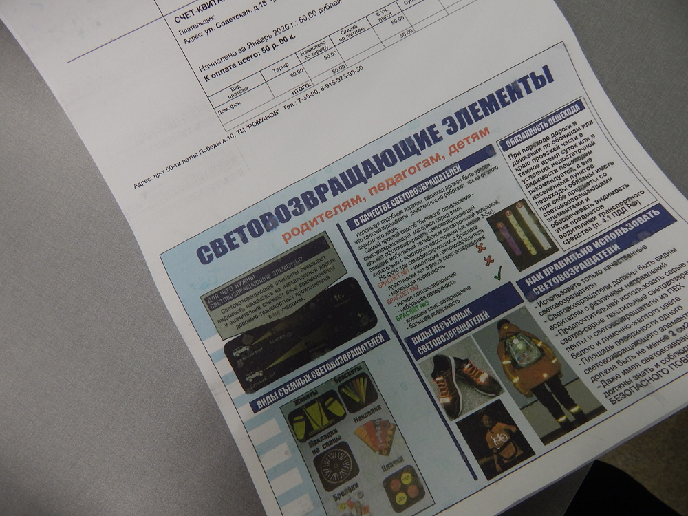 ПропагандаДля пропагандистских целей могут использоваться любые средства массовой информации: телевидение, печатная продукция, наружная реклама, рекламные щиты и тканевые растяжки. Ко всему этому жители нашего города и района уже не первый год получают квитанции, на которых размещена социальная реклама по профилактике безопасности дорожного движения. Каждый месяц тематика информации меняется в зависимости от сезона и проблемы, которую мы перед собой ставим. На квитанциях этого месяца размещена информация в части, касающейся использования световозвращающих элементов.