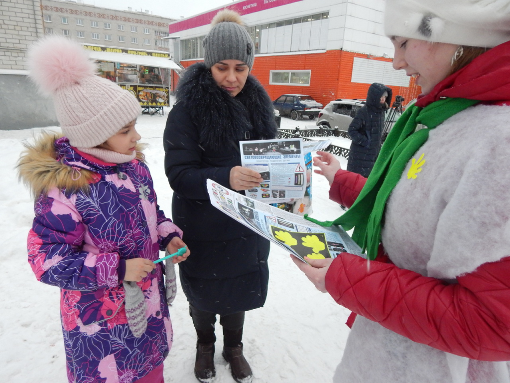 Акцию «Засветись!» в Тутаеве провели сотрудники ГосавтоинспекцииПропагандистскую акцию под названием «Засветись!» провели сотрудники ГИБДД совместно с творческой группой муниципального учреждения «Районного Дворца культуры им. Малова» и отрядом юных инспекторов движения МОУ СШ №6. Акция прошла на центральной улице города. Целью акции является предотвращение дорожно-транспортных происшествий с участием пешеходов и популяризации использования световозвращающих элементов. Внимание пешеходов привлекли танцующие Снеговики и веселые кричалки по дорожной тематике. Юидовцы раздали пешеходам красочные листовки, световозвращающие элементы и разъяснили, что светоотражающие элементы на верхней одежде, на рюкзаках и сумках помогут водителям в темное время суток заметить пешехода. По статистике в течение 2019 года зарегистрировано 9 ДТП с участием пешеходов, в которых 10 человек получили травмы различной степени тяжести, из них 5 человек стали участниками происшествий в темное время суток.