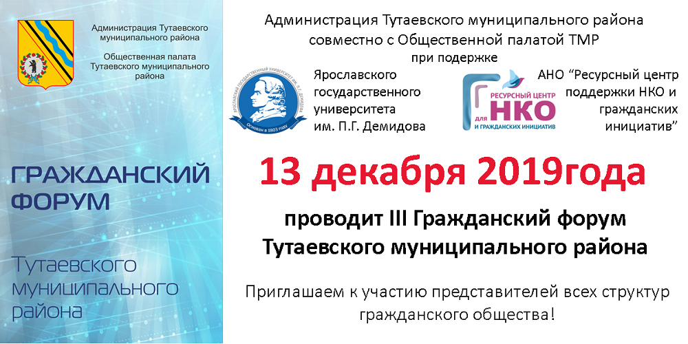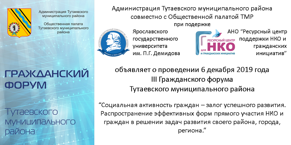 1 декабря  2023 года состоится V Гражданский форум Тутаевского муниципального района